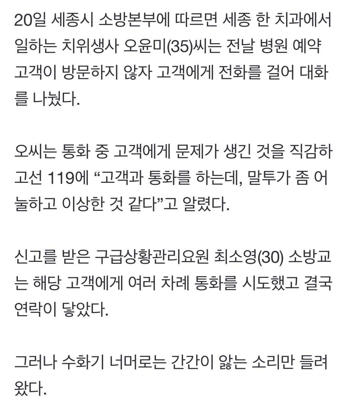 노쇼 환자한테 전화했는데 말투가 어눌해서 바로 119 신고.